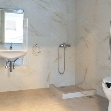 Ο νεότευκτος χώρος μας διαθέτει ένα W.C. και ένα μπάνιο Α.Μ.Ε.Α , ευρισκόμενος σε πλήρη εναρμόνιση με τις νέες υγειονομικές διατάξεις για τις σχολές Χορού.